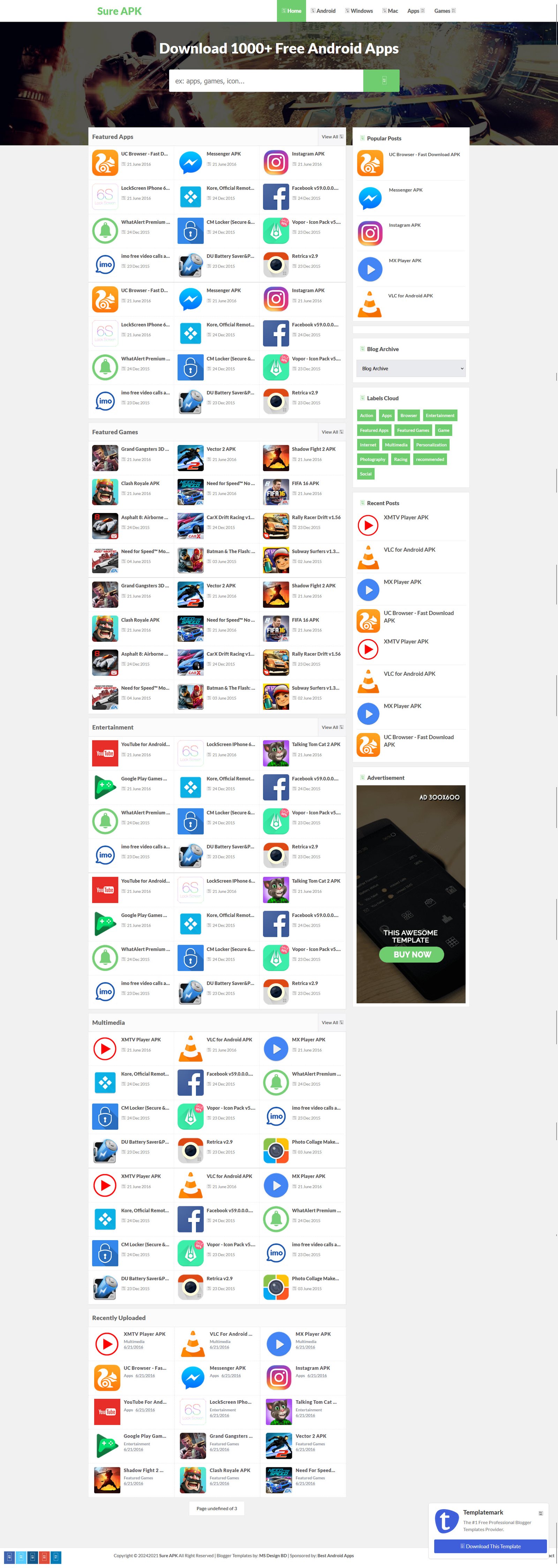 Sure APK is a custom website template designed for building your own APK store or Android app download platform. It provides a modern and organized layout that makes it easy for users to browse, search, and download mobile applications safely and efficiently.